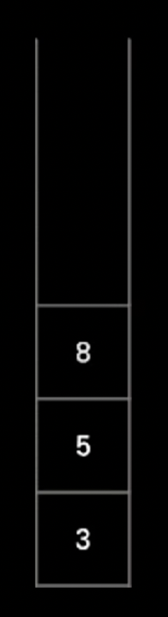 3을 넣은 다음 5를 넣고 그 다음 8을 넣으면 다음과 같다.