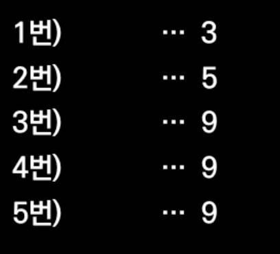 5번 같은 경우 100을 기준으로 왼쪽 오른쪽이 나뉘며 왼쪽에는 5개, 오른쪽에는 9개가 나온다.
