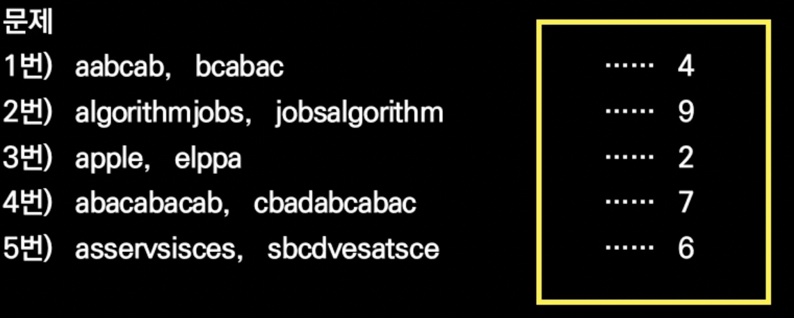 위 문자열은 모두 두 문자열의 부분 문자열이다. 이 문자열들 중 가장 긴 것은 abc, aba가 있고 길이는 3이다. 즉, LCS는 3이다.