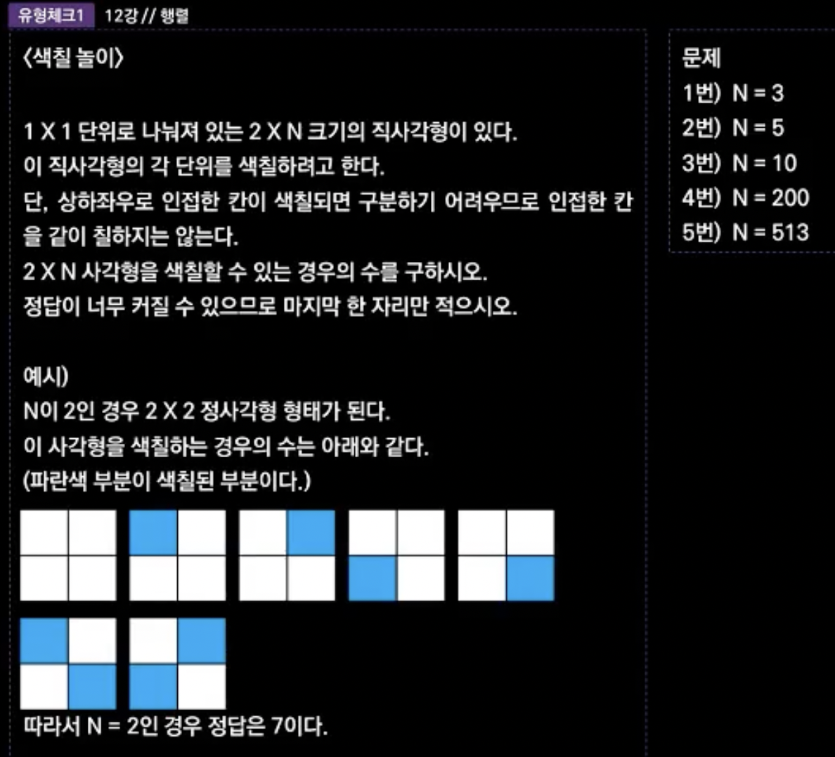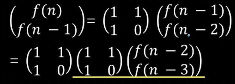 점화식은 f(n) = f(n-1) + f(n-2) 형태가 된다. 이를 행렬로 표현해보자.