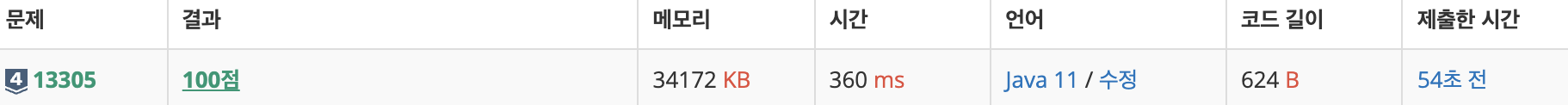 숫자가 워낙 크기 때문에 처음에는 double을 사용했다. 하지만 소숫점을 표기하기 때문에 의도적으로 소숫점을 반올림해서 표현했는데 3번째 테스크에서는 소수점으로 값이 주어지는 경우가 있는 것 같다. 결과값이 소수점이 포함되어있어도 정수로 표기하게 되어 처음에는 58점을 받았다. 데이터 타입을 int도 double도 아닌 정수와 소수 표기가 모두 가능한 long을 사용해야하는 문제이다.