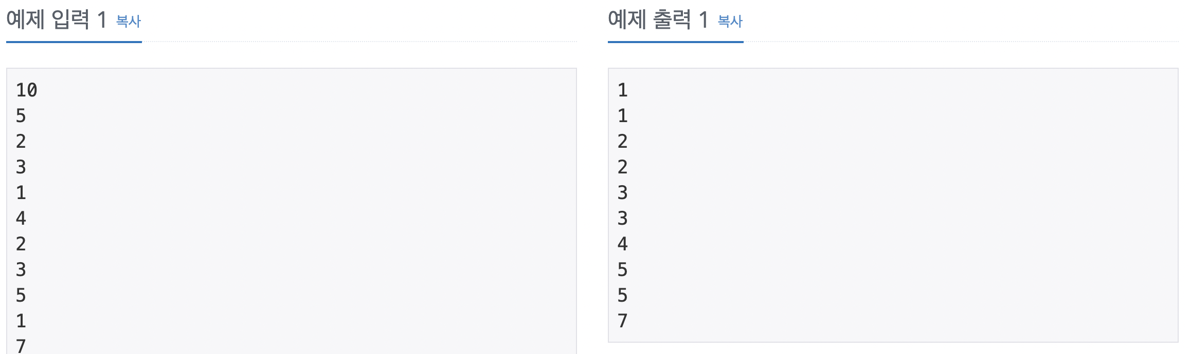 N개의 수가 주어졌을 때, 이를 오름차순으로 정렬하는 프로그램을 작성하시오.