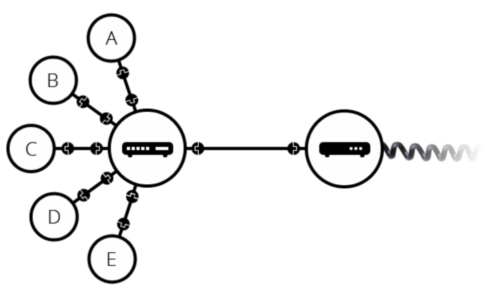 이를 해결하기 위해 라우터(패킷 전송 장치)라는