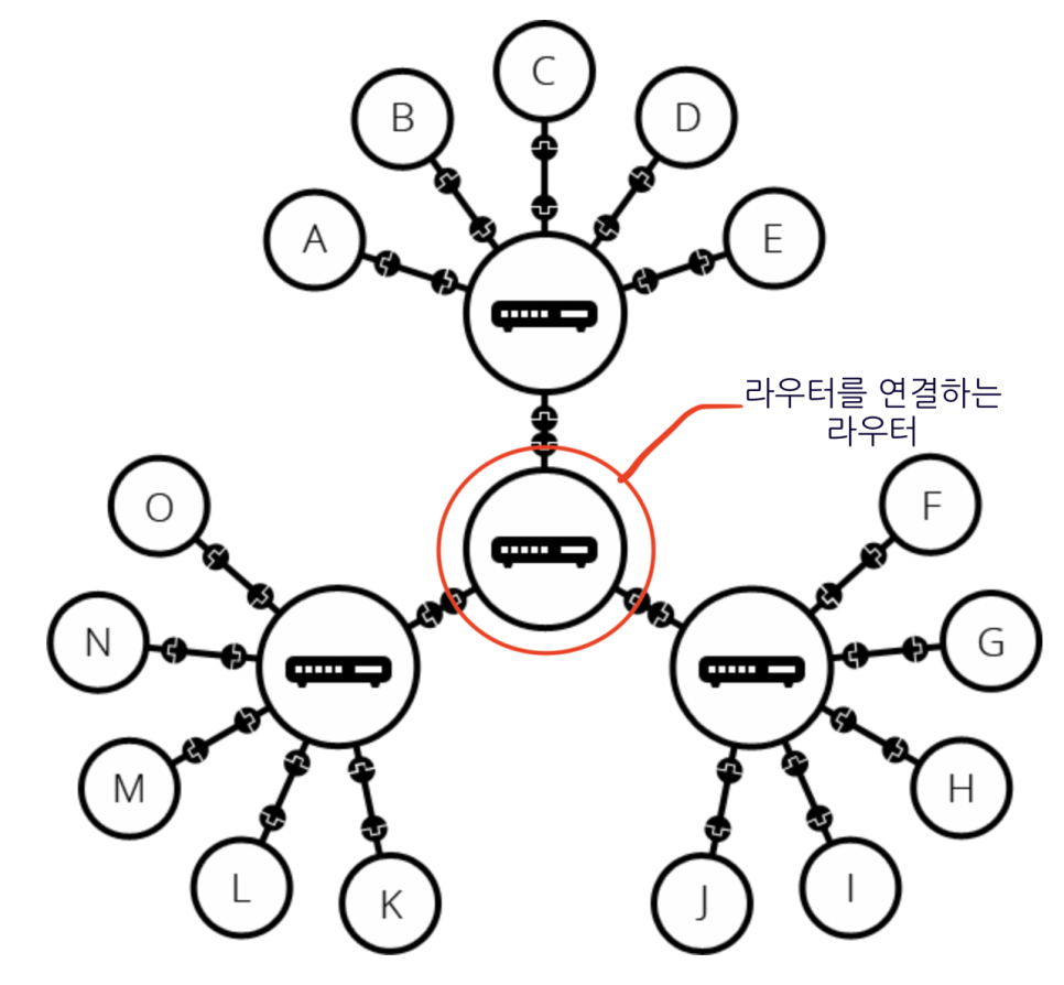 그리고 다시 그 라우터들을 하나의 라우터에 연결하는 것이죠