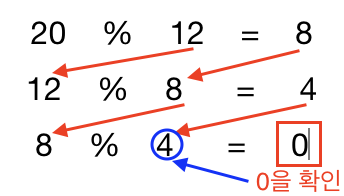 두 수(12, 20)만으로 최대공약수를 구해봅시다