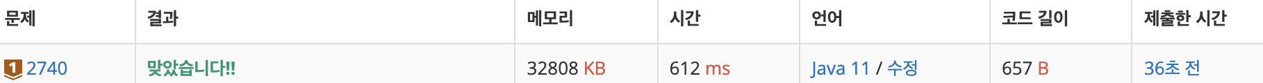 | 1 초 | 128 MB | 9128 | 6271 | 5414 | 70.476% |