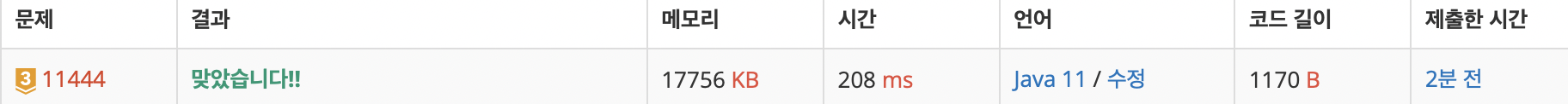 | 1 초 | 256 MB | 6900 | 3453 | 2837 | 53.498% |