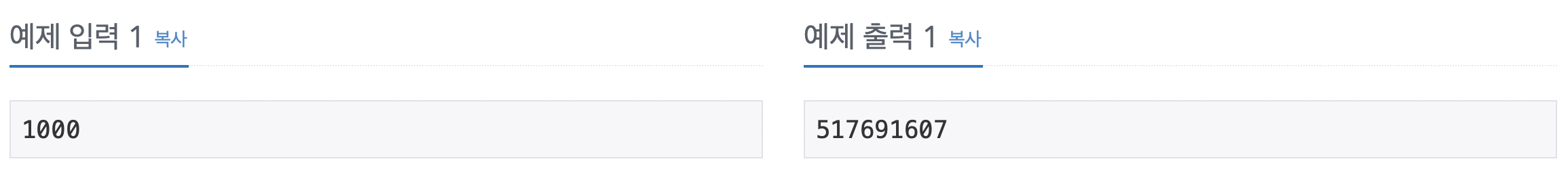 첫째 줄에 n번째 피보나치 수를 1,000,000,007으로 나눈 나머지를 출력한다.