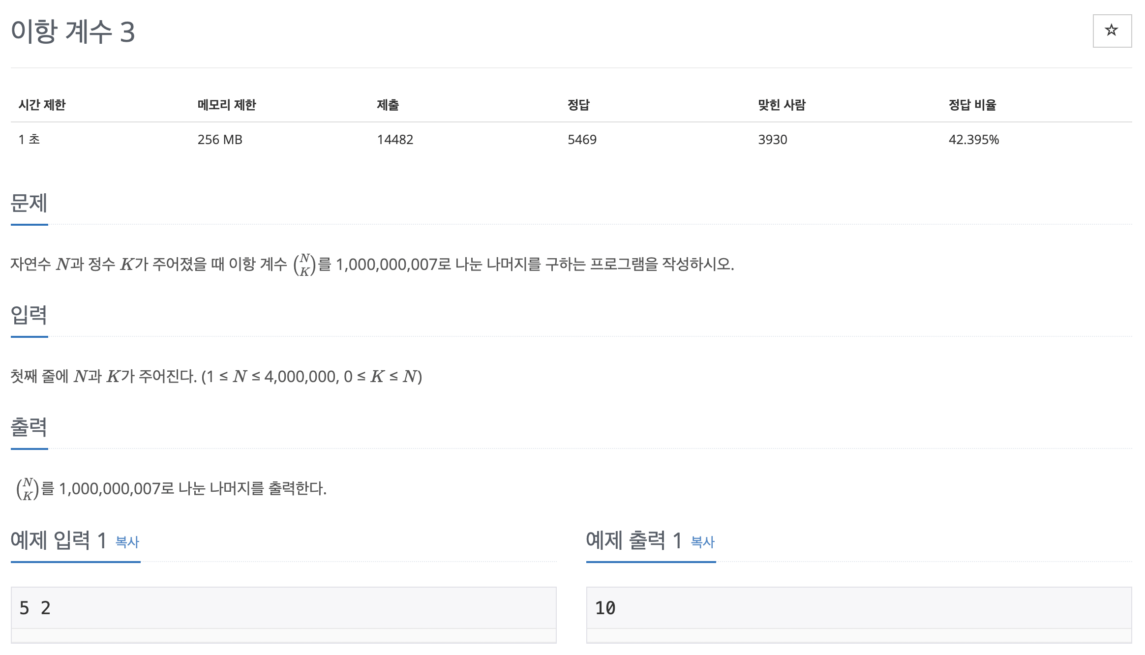 이항계수의 다항식의 성질을 생각할 수 있지만 반복문을 사용하기 때문에 시간초과가 발생한다.