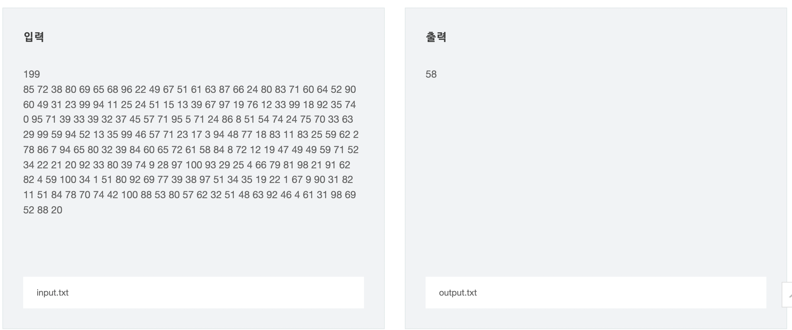 N 개의 점수들 중, 중간값에 해당하는 점수를 정답으로 출력한다.