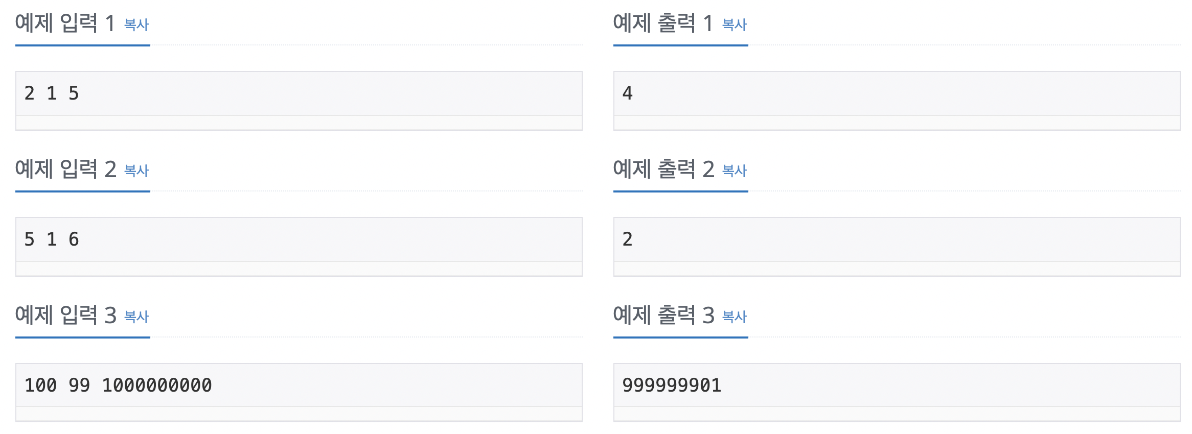 이 때문에 반복문을 사용하는 것이 아닌 수학적인 접근이 필요합니다.