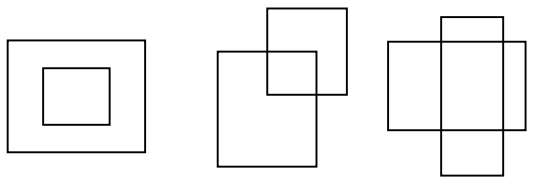 두 개의 직사각형은 그 겹치는 부분의 특성에 따라 다음 4가지 경우로 분류될 수 있다.