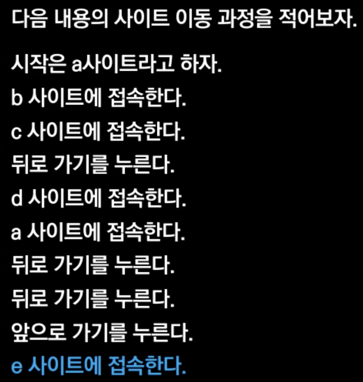 인터넷 브라우저의 뒤로 가기, 앞으로 가기 기능은 스택을 이용해서 구현할 수 있다