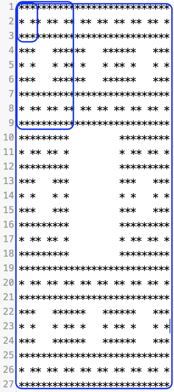 //위 두 개의 for문으로 각 구역의 시작 좌표를 설정할 수 있다. star[i][j]