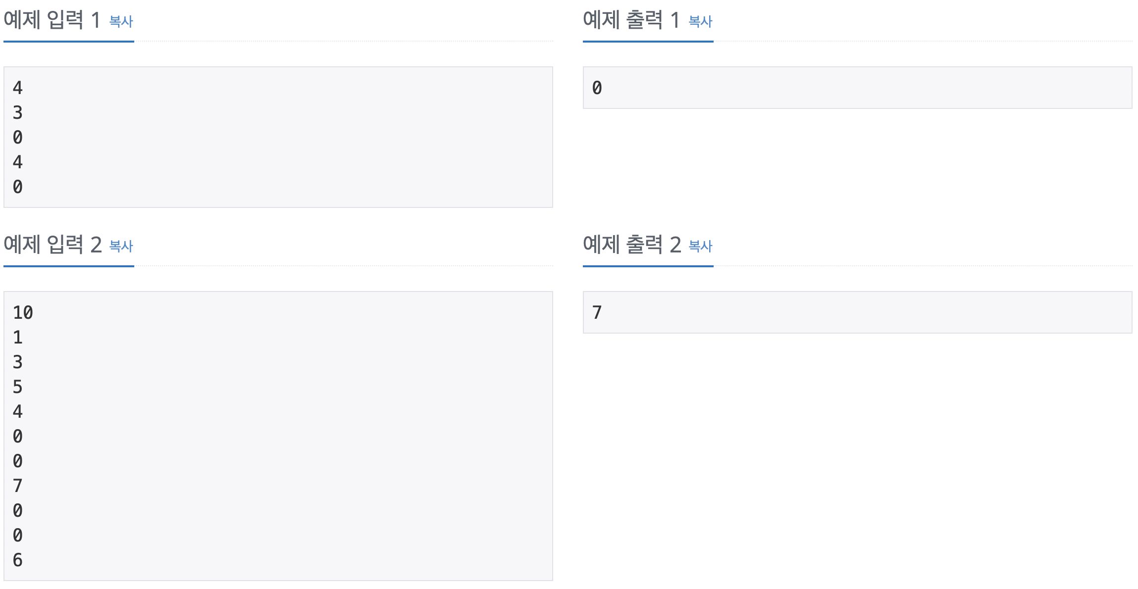 2) 0을 입력받으면 sum에서 그 값을 빼주고 stack에서도 pop을 실행