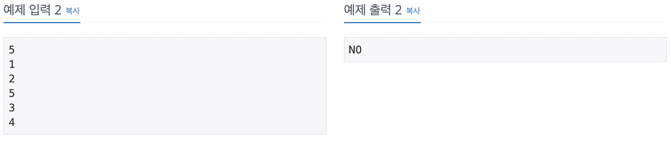 if(input<now) { //입력값이 now보다 작아지면 종료 후 NO출력