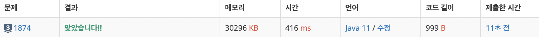 //stack의 크기가 0이되면 stack.peek()를 사용할 수 없다.