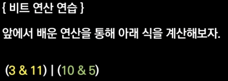 2진법의 수 A, B에 대해 A | B는 앞에서 배운 || 연산을 같은 위치의 모든 비트에 대해 해주면 된다.