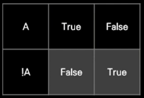 A가 참이면 위 명제는 거짓이다. !A라는 식은 A의 정보를 뒤집은 결과가 나온다.