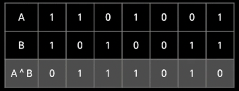 만약 어떤 위치에서 A, B값이 다르면 1이 되고, 서로 같다면 0이 된다