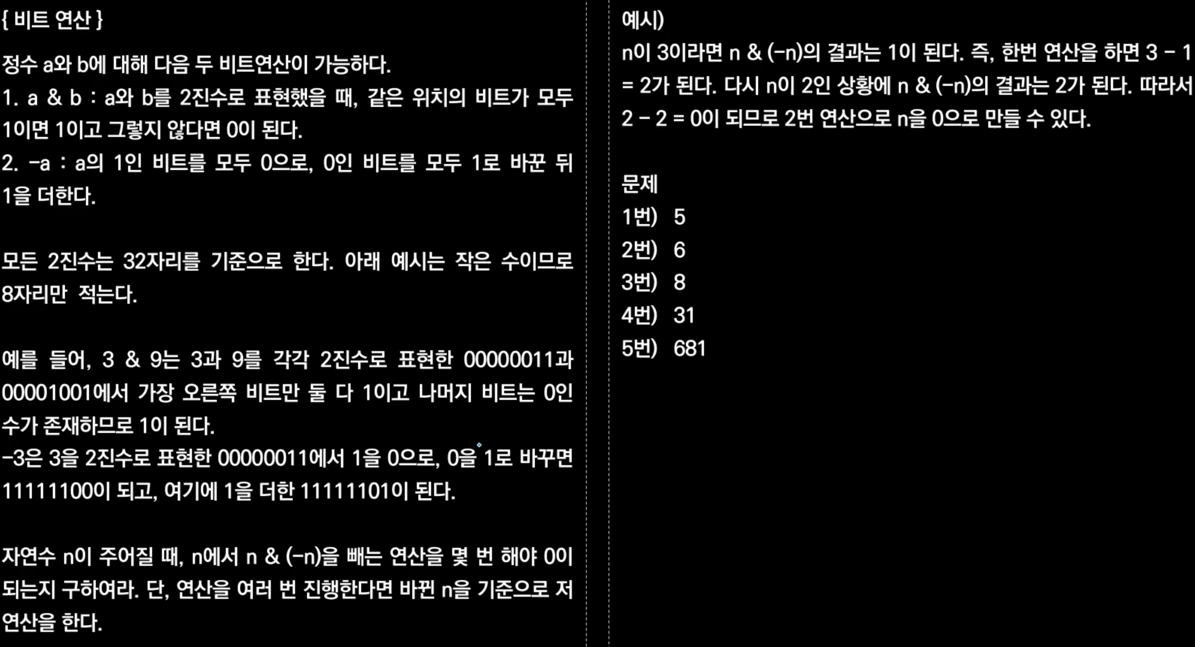 앞서 2진법의 음수 표현법을 배웠다. 여기서는 비트연산을 이용해 음수 표현법을 나타내는 식을 배운다.