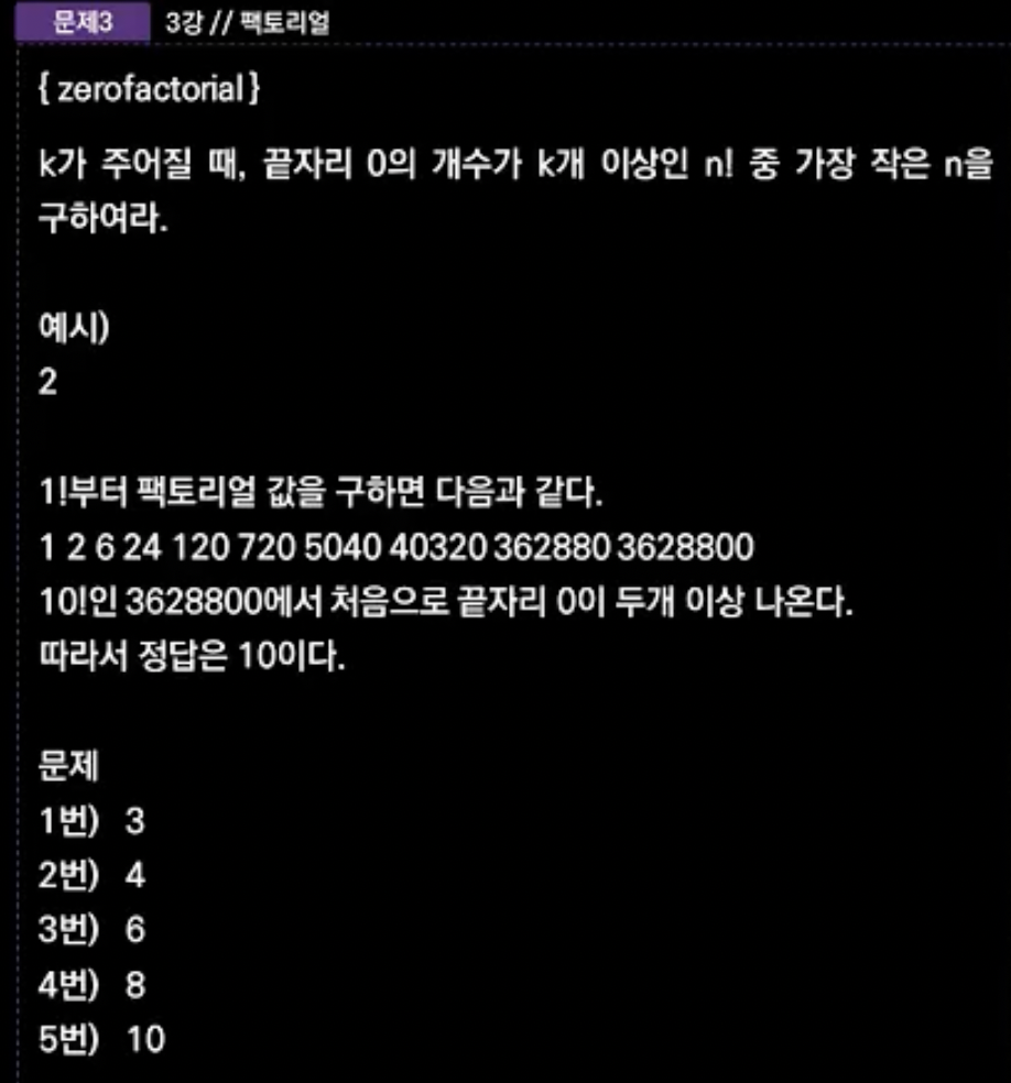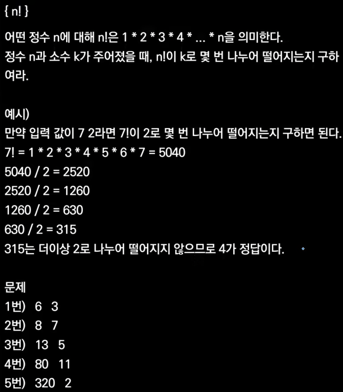 팩토리얼을 사용할 만한 가장 유용한 성질을 문제로 알아보자.