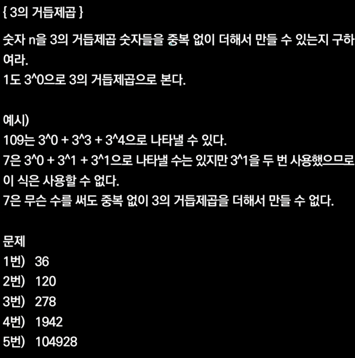 shift연산을 활용해 2진수로 바꾼다음 푼다. 아니면 주어진 숫자를 역순으로 분해한다