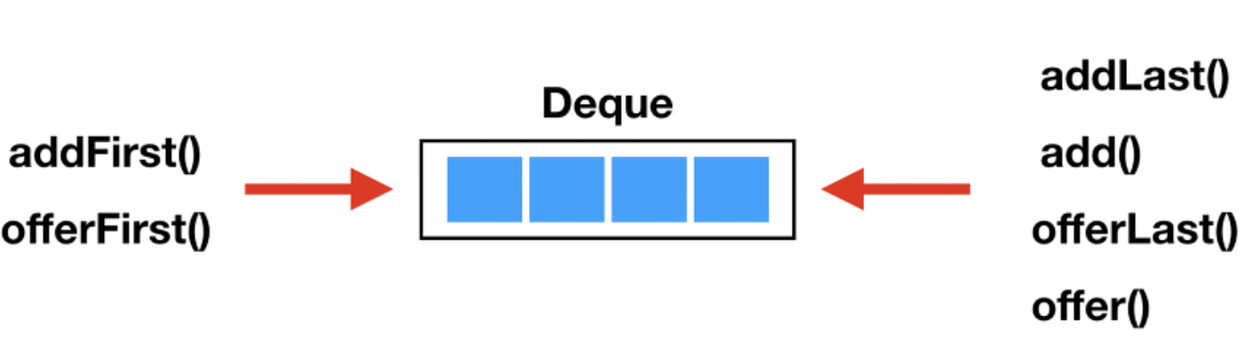 Deque는 입력 출력의 방향이 자유로운 만큼 많은 메소드가 존재한다