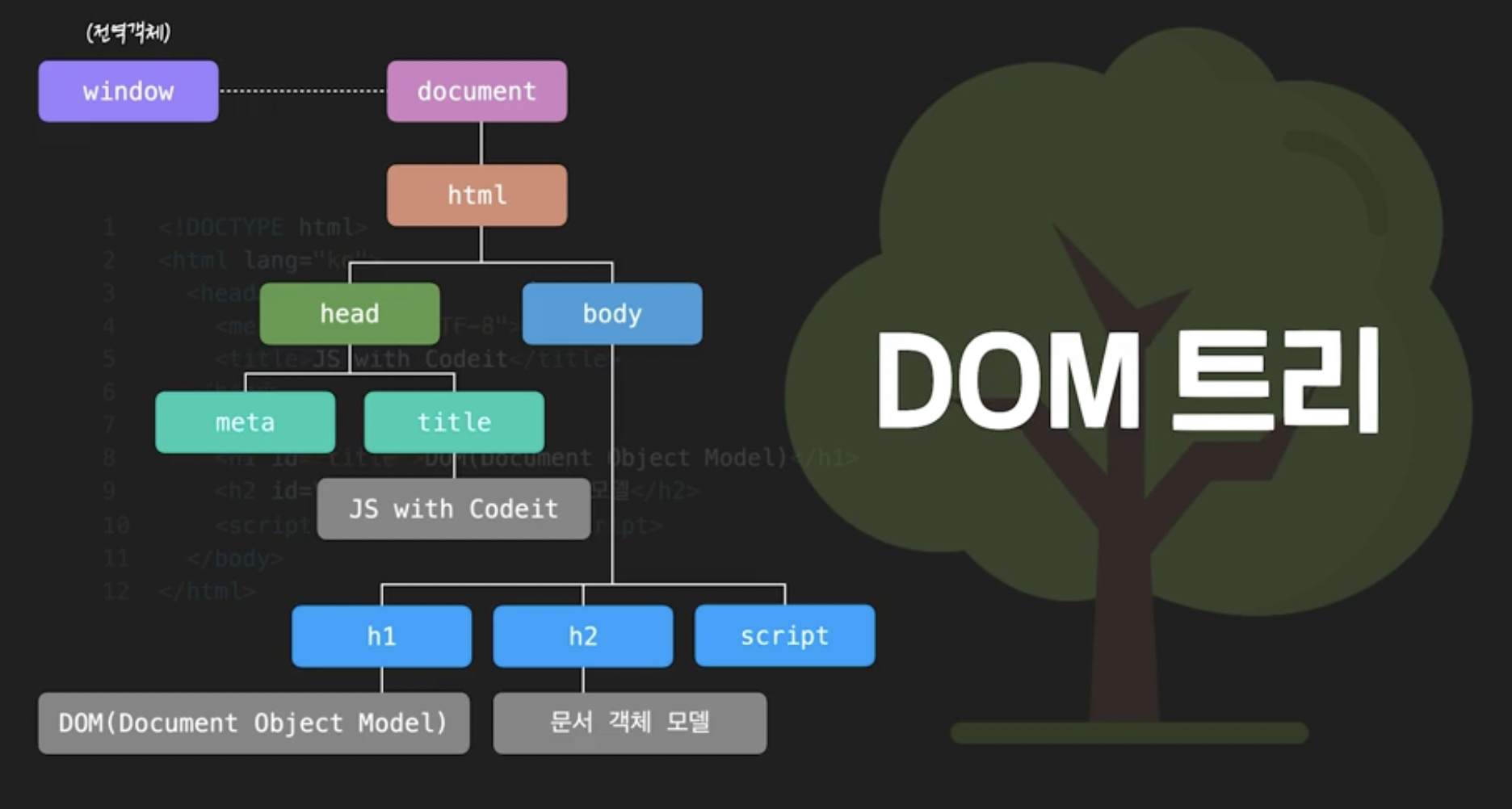 브라우저도 객체 window객체를 활용해 브라우저 열고 닫기, 크기 반환 등을 수행할 수 있다 window 객체를 자바스크립트 내에서 불러올 수 있다. 전역개체(Global Object)이다 window 객체(전역개체) window.innerWidth 브라우저 창의 너비 반환 window.innerHeight 브라우저 창의 높이 반환 window.open() 브라우저 창 열기 window.close() 브라우저 창 닫기 console 또한 window.console이지만 전역개체이므로 생략가능하다 DOM(Document Object Model) 문서 객체 모델이제껏 사용해왔던 document객체가 DOM의 최상단 객체이다 DOM은 웹페이지에 나타난 html 문서 전체를 객체로 표현한다 document 알..